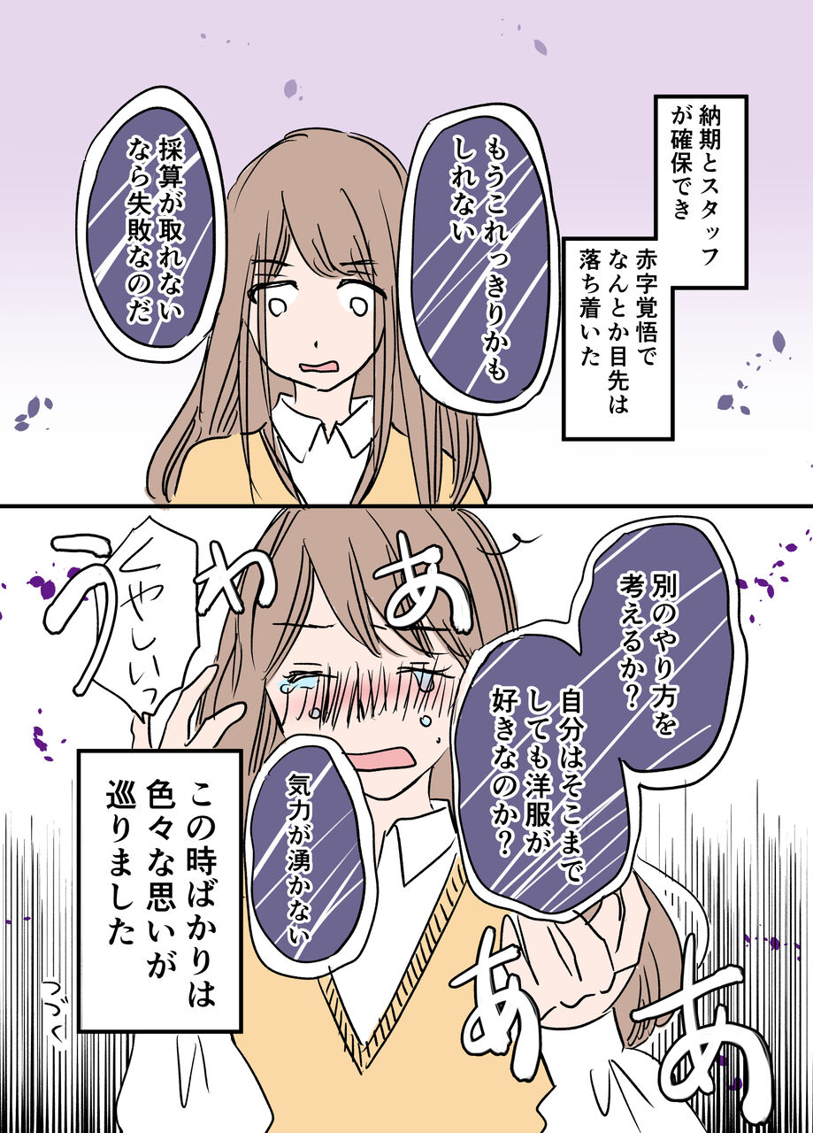 「洋服作りで陥った困難と、暗いトンネルを抜けるまで」② です。