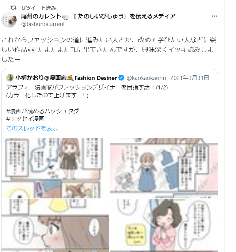 学習要素も強い(現に服飾学校で学んだエッセイ)漫画だから、情報を必要としている人の役に立つ漫画だよなあと改めて感じました。