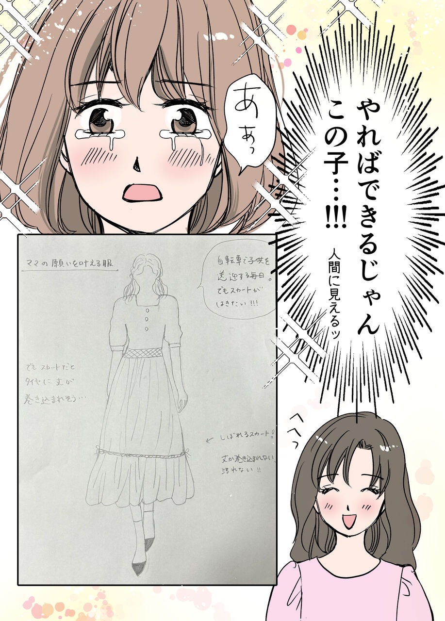 初めは拙いデザイン画でしたが次第に上手くなっていき、そして二人の力で洋服を形にしてきました。